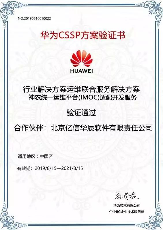近期,億信華辰還通過華為IMOC適配開發(fā)服務(wù)的CSSP伙伴認(rèn)證。這也意味著我們與華為有了更深入的合作,不僅是產(chǎn)品工具的合作伙伴,同時(shí)也是實(shí)施開發(fā)服務(wù)的合作伙伴,將來可以在IMOC項(xiàng)目中提供可視化相關(guān)的實(shí)施開發(fā)服務(wù)。
