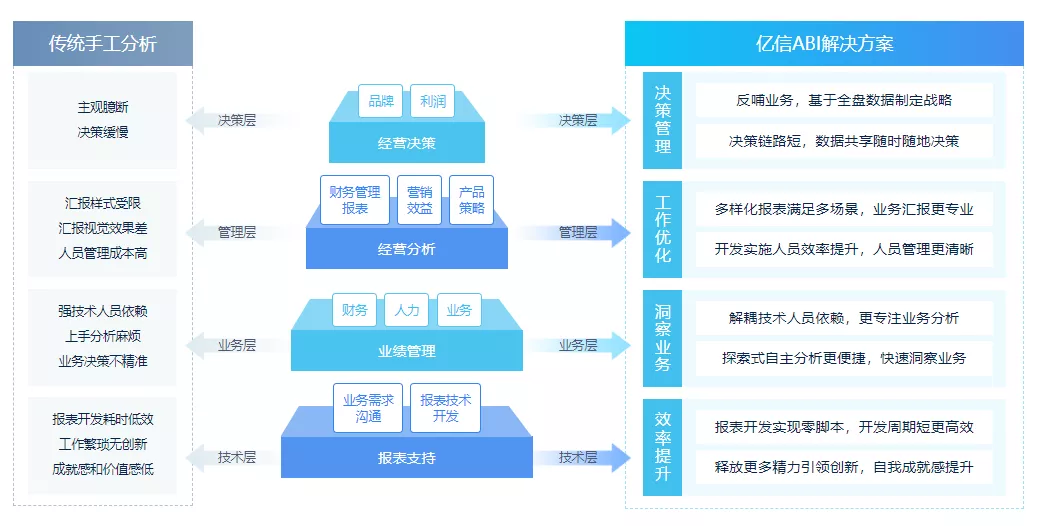 作為國內(nèi)最早深耕BI領(lǐng)域的軟件公司,億信華辰致力于為政企客戶提供一站式數(shù)據(jù)分析平臺,此次獲獎的億信ABI滿足用戶從數(shù)據(jù)填報(bào)、ETL數(shù)據(jù)處理、數(shù)據(jù)建模到數(shù)據(jù)分析、數(shù)據(jù)可視化、移動應(yīng)用等各個環(huán)節(jié)的功能需求,覆蓋數(shù)據(jù)分析完整流程,幫助用戶實(shí)現(xiàn)更深入的業(yè)務(wù)洞察力。