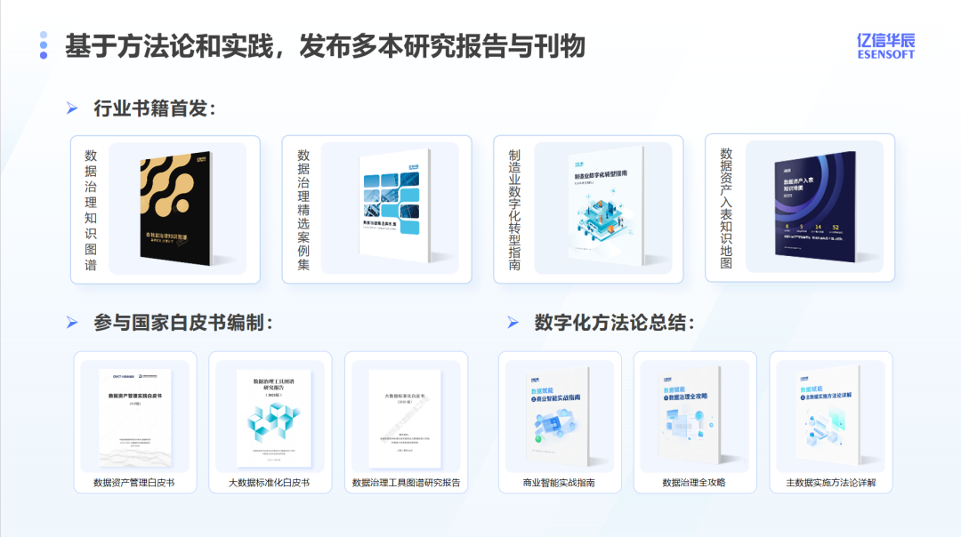 億信華辰積極推進(jìn)產(chǎn)學(xué)研深度融合,加入中國(guó)信息通信研究院、大數(shù)據(jù)技術(shù)標(biāo)準(zhǔn)推進(jìn)委員會(huì)、全國(guó)信標(biāo)委大數(shù)據(jù)標(biāo)準(zhǔn)工作組等國(guó)家行業(yè)性組織,參與國(guó)家各類標(biāo)準(zhǔn)及行業(yè)白皮書(shū)的編制和討論,基于方法論和實(shí)踐,行業(yè)獨(dú)家首發(fā)《數(shù)據(jù)治理知識(shí)圖譜》、《數(shù)據(jù)治理精選案例集》、《數(shù)據(jù)資產(chǎn)入表知識(shí)地圖》等知識(shí)性書(shū)籍,助推大數(shù)據(jù)及數(shù)據(jù)治理行業(yè)發(fā)展。