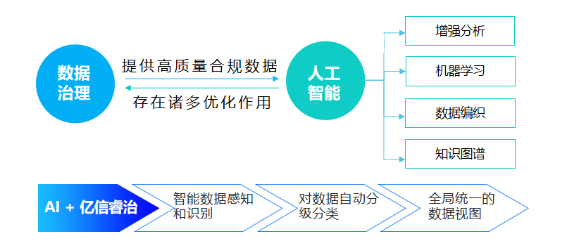 進(jìn)入21世紀(jì)20年代,人工智能經(jīng)過(guò)20余年的蓬勃發(fā)展,迎來(lái)爆發(fā)式增長(zhǎng)的新高潮。億信華辰一直進(jìn)行智能化技術(shù)的探索,幫助提升數(shù)據(jù)分析與數(shù)據(jù)治理效率,解放人工。億信ABI作為全新一代智能數(shù)據(jù)處理分析平臺(tái),分階段有步驟的實(shí)施AI布局,通過(guò)程序自動(dòng)化、ML機(jī)器學(xué)習(xí)和深度學(xué)習(xí)等大數(shù)據(jù)能力,規(guī)劃了智問(wèn)、智讀、智算三步遞進(jìn)策略,打造出一個(gè)會(huì)思考、能說(shuō)話、有決策的BI系統(tǒng),助力走向ABI的最佳實(shí)踐。在數(shù)據(jù)治理方面,睿治數(shù)據(jù)治理平臺(tái)不斷融合AI新技術(shù),力求通過(guò)智能化管理來(lái)簡(jiǎn)化數(shù)據(jù)治理實(shí)施過(guò)程,目前可實(shí)現(xiàn)“智規(guī)”、“智檢”、“智盤”、“智問(wèn)”。