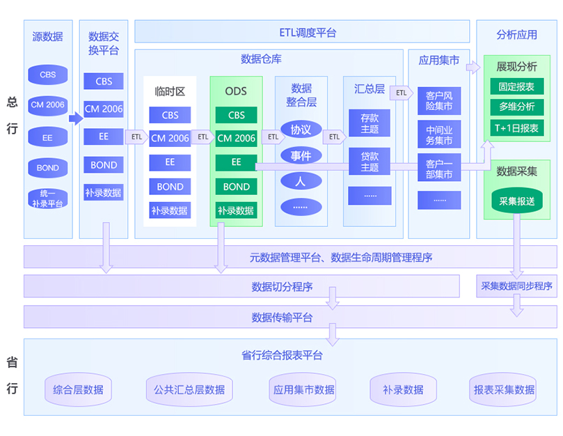項目建設概況 為了解決以上問題,保障系統的科學性、先進性、高效性、易用性,更為了全面夯實農發行數據分析應用側的技術架構。 1、根據金融行業數據建模模型,建成了業務分析數據; 2、實現了各報表應用的數據同源、同構,統一數據口徑; 3、實現指標共享,解決各報表系統的數據來源不一,缺乏統一的數據標準和規范,跨系統進行業務綜合分析難以實現的問題; 4、通過這億信ABI的功能快速定制,實現了各類業務報表需求,降低了報表開發的成本和難度,縮短了報表開發周期,規范了報表使用的操作流程,降低了管理與維護的復雜度,靈活實現了日益增加的各類報表需求。